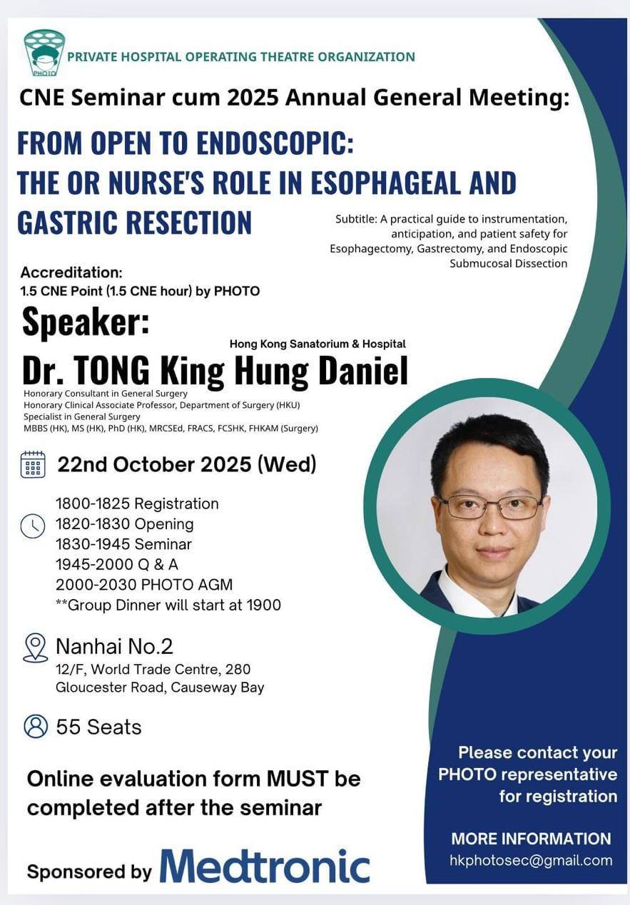 PHOTO CNE Seminar cum 2025 Annual General Meeting: A practical guide to instrumentation, anticipation, and patient safety for Esophagectomy, Gastrectomy, and Endoscopic Submucosal Dissection